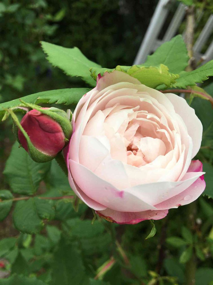 しぼりが綺麗なつるバラ、マダムピエールオジェ。最初の一輪です。