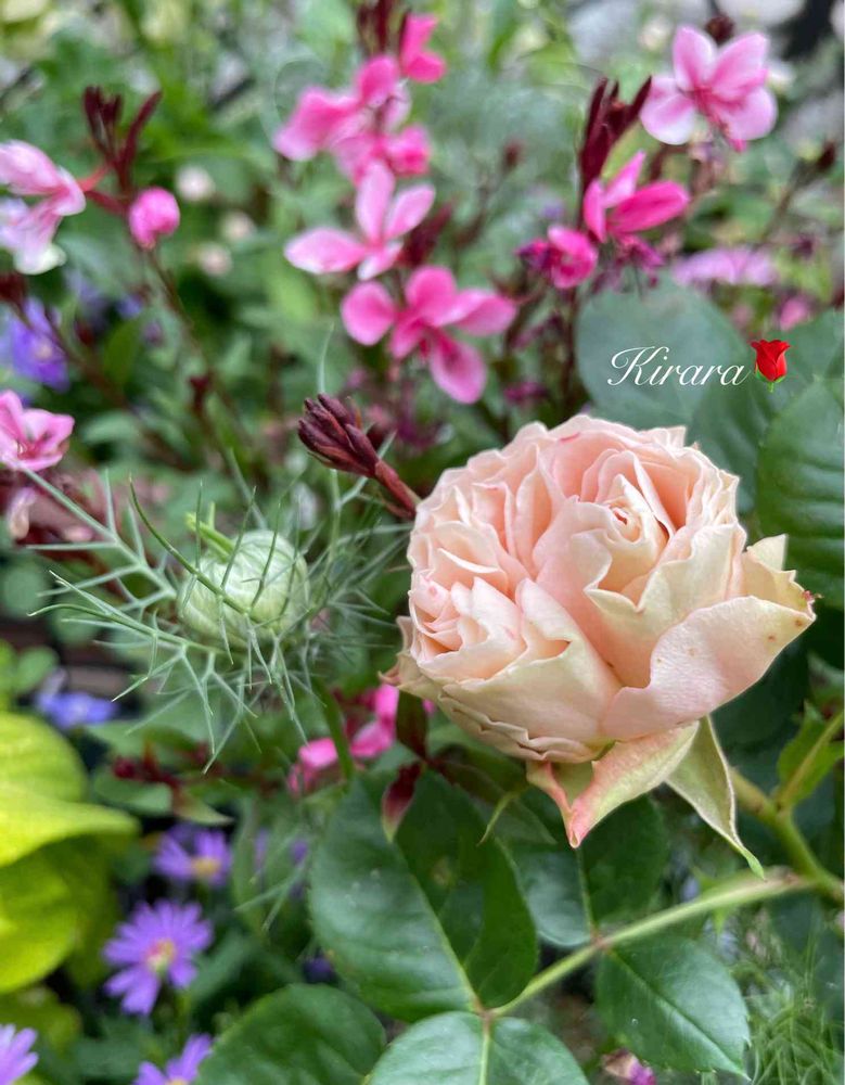 バラとニゲラさんとガウラさんの共演なんて素晴らしい💖