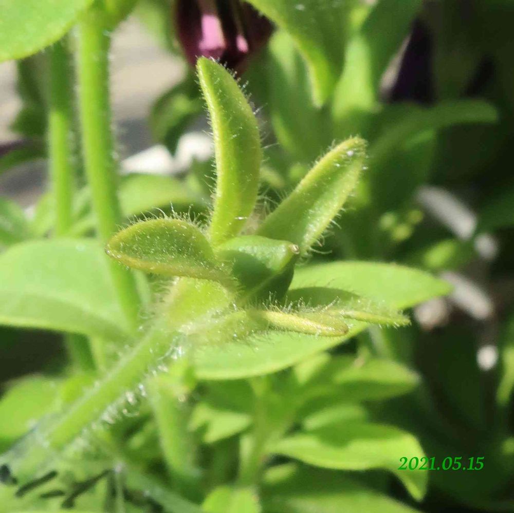 初めてのペチュニアの交配 シードポッドが成長してる!
