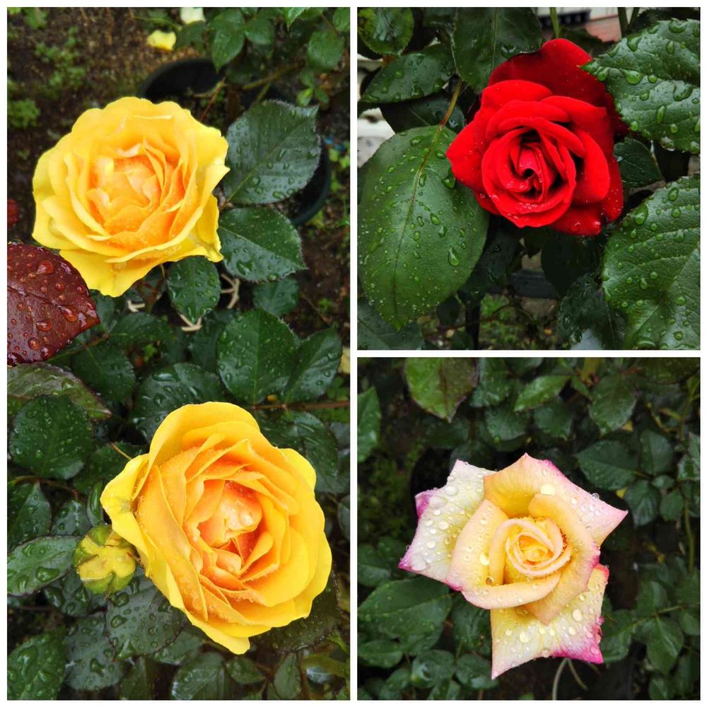暖かい雨の中、バラが次々と咲いています。びしょ濡れ☔️