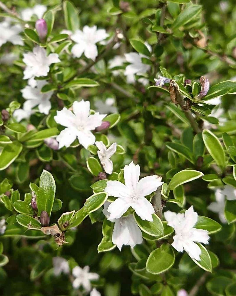 アカネ科ハクチョウゲ属の常緑低木。中国原産。丈夫で刈り込みにもよく耐えるので生け垣にされることが多い。花期は5~7月。葉の腋に漏斗状で先端が深く5裂(ときに6裂)し、さらに浅く3裂した小さな花がたくさん咲く。花色は白色または淡桃色。雌しべが雄しべよりも長いものと短いものがあり、別々の株に咲く。挿し木で育てることが比較的容易で、盆栽にもされる。園芸品種には二重咲きや八重咲き、日本で誕生した葉に斑が入るものなどがある。