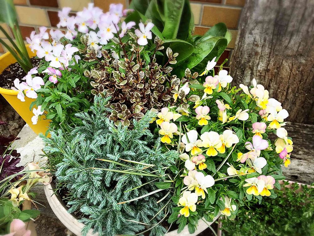 2月に作った寄せ植えがこんなにモリモリになり、また、イメージも変わりました🙂❣️