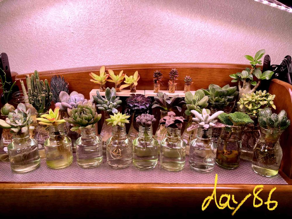 多肉植物の水耕栽培86日目。