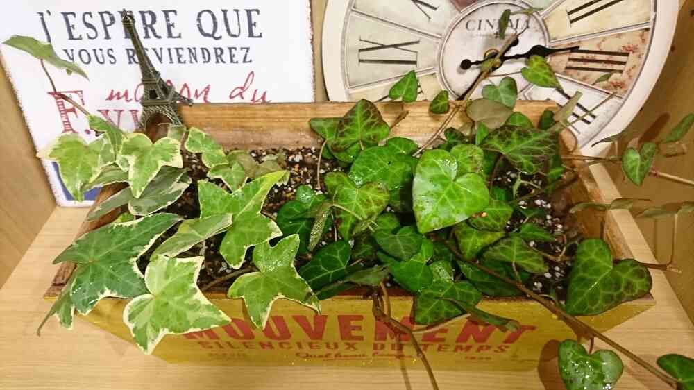 先日挿したアイビーだけど…大きいウッドプランターが空いたので挿し直し(笑)