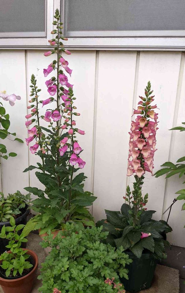 PWさんのベリーカナリーと、ハイブリッドジギタリスパンサーを並べてみました。ベリーカナリー(右)は、今年の春に蕾が上がってきているものを購入。パンサー(左)は、うちで冬越ししました。どちらもそれぞれの良さがありますね😊