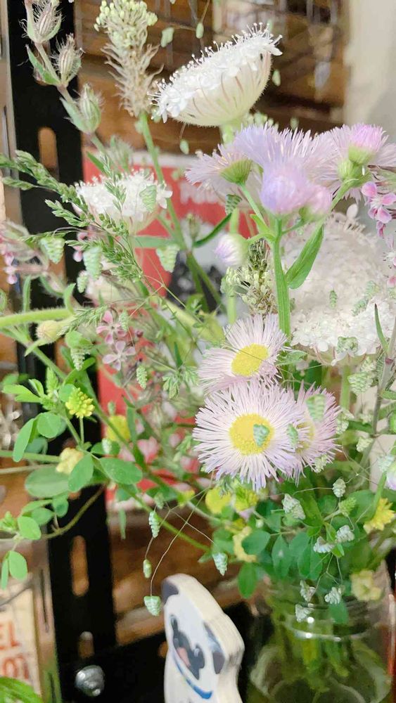 会社帰りにワンコがおしっこかけてそうなコンクリートの隙間に咲いてた野草を少し摘んでわんこの仏壇に飾りました。懐かしいでしょ、ブー君。