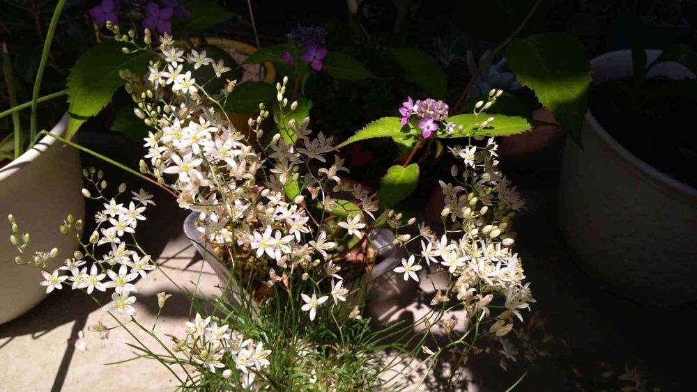 バルコニー/ベランダ,ヤマアジサイ 藍姫,オーニソガラム ジュンシフォリウムの投稿画像