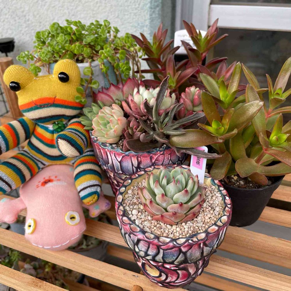45さんの多肉ちゃんと恐竜鉢は相性抜群です♥