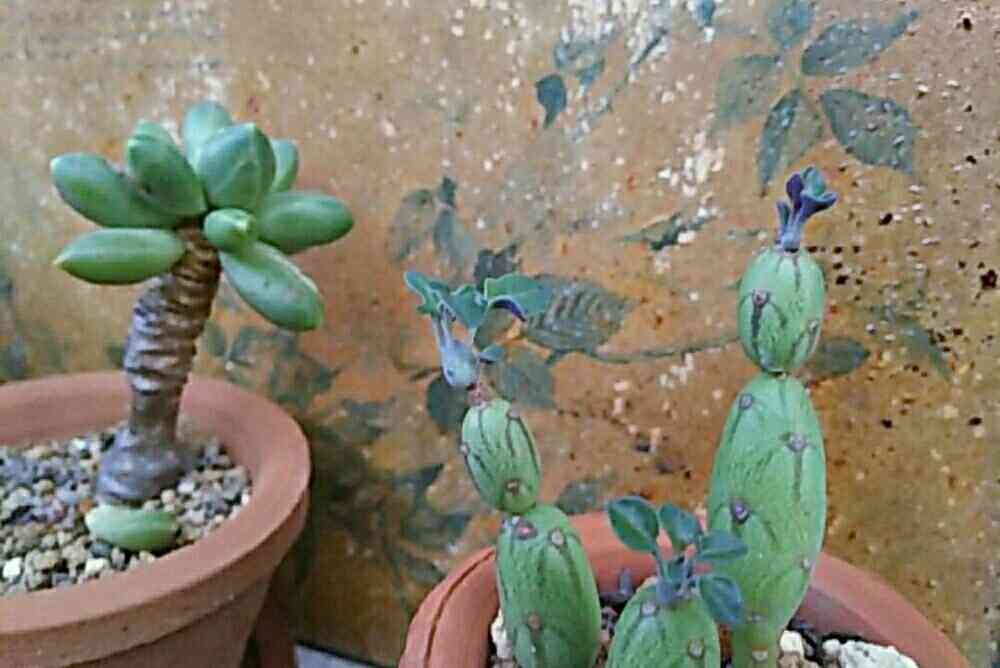 頭がツルツルだった手前の七宝樹に葉っぱが生えてきた(o^-^o)