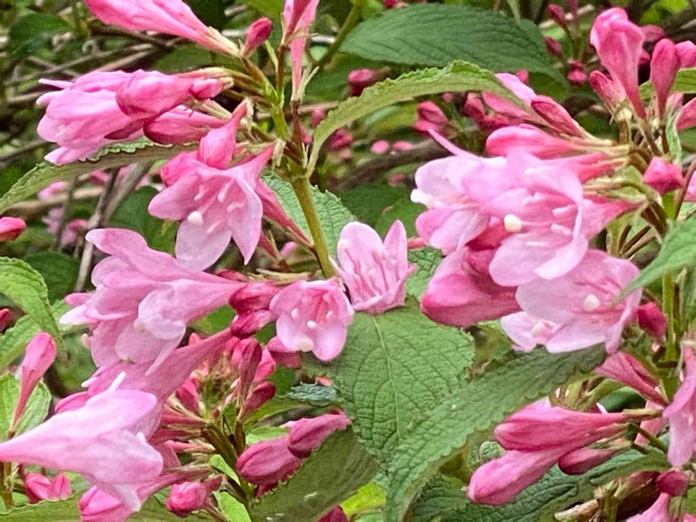 タニウツギ(谷空木、学名:Weigela hortensis)はスイカズラ科タニウツギ属の落葉小高木で、田植えの時期に花が咲くので「田植え花」としても知られる。梅雨の時期に山道を通ると新緑の中で咲くピンクの花はひときわ映えて見えるので見つけやすい。