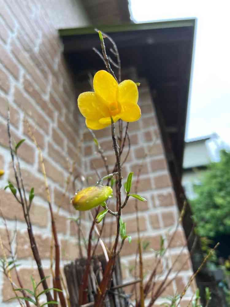 玄関前に下げている黄色のセッコクが咲き始めました💕
