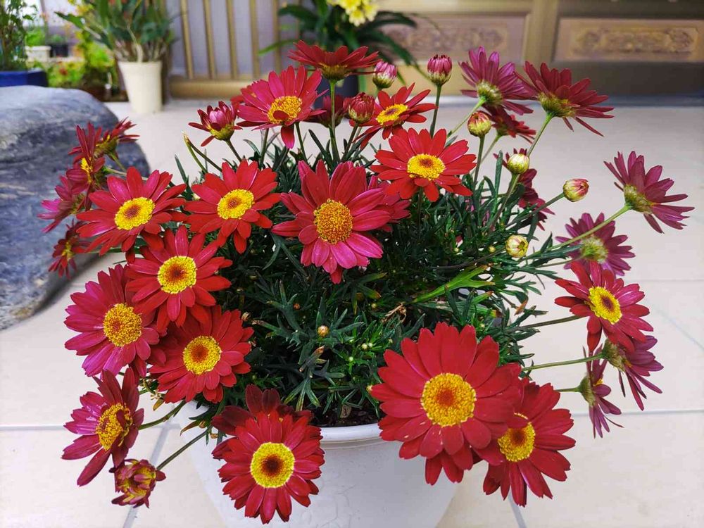 赤いボンザマーガレットも❤️大きく咲いて🌸お祝いしてくれてる💖