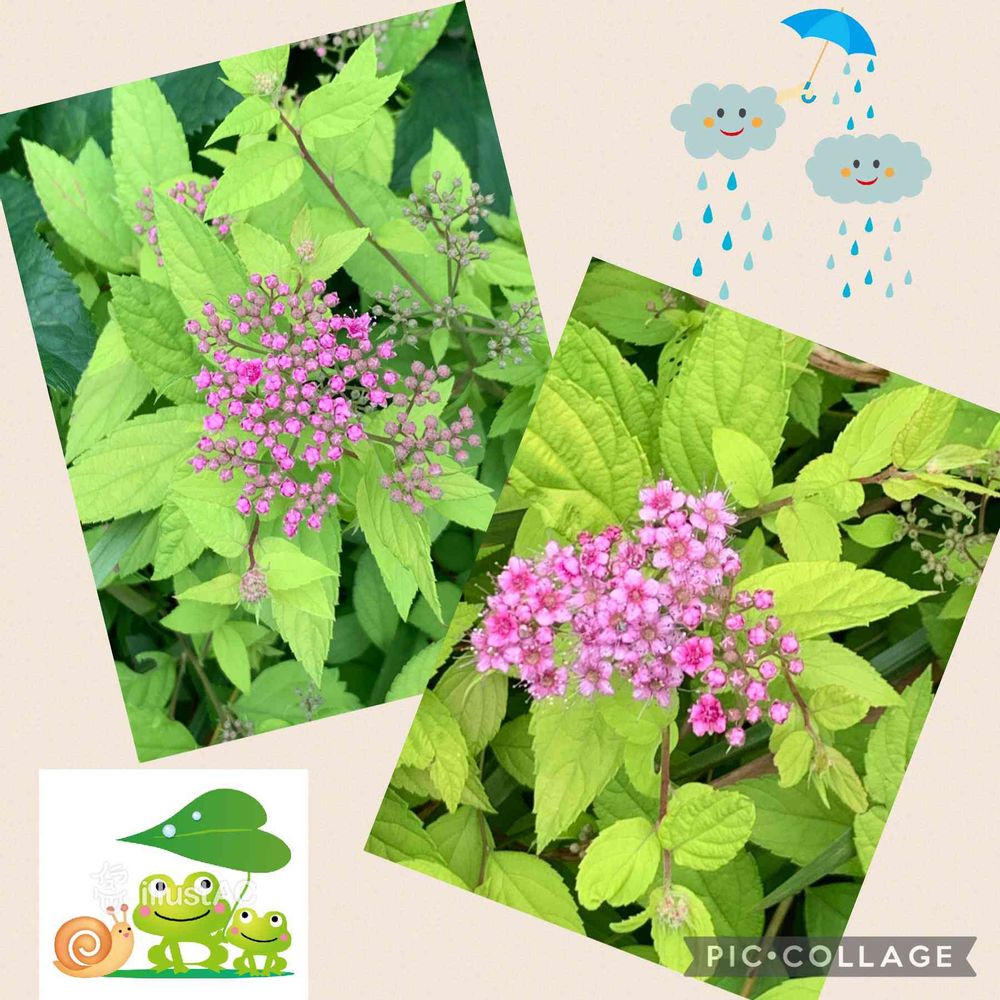 梅雨時に気分が滅入るのでこのシモツケの投稿には🐸や🐌を登場させてみました。