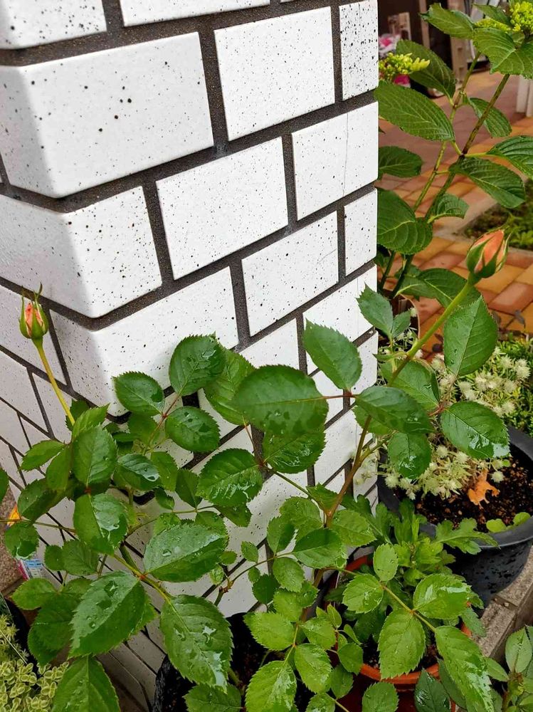 詳しい品種不明のミニバラ ローズフォーエバー。そろそろ咲きそうです。つぼみの色はクリームとピンク、かな?楽しみ楽しみ。
