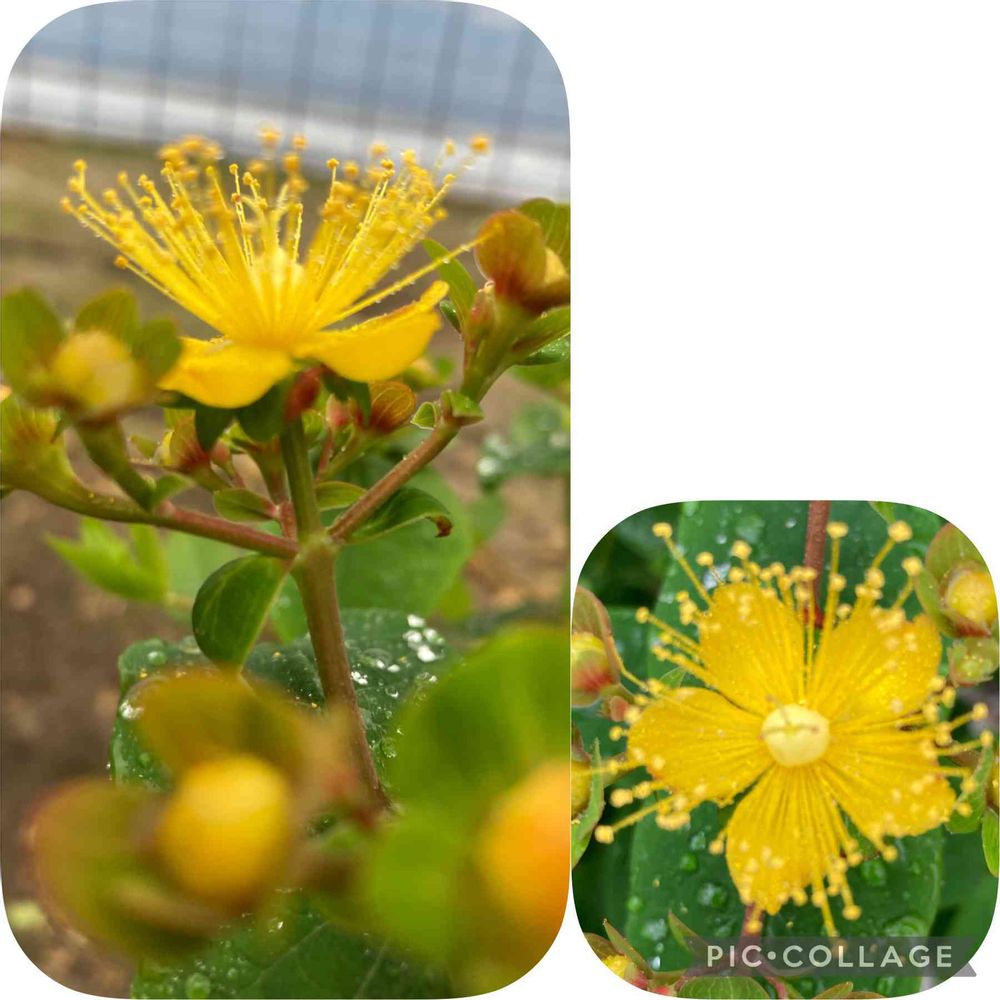 今朝、庭を見ていたら👀ヒペリカムの花がひとつ咲いていました😊おしべがとっても長くって、私のまつ毛に欲しいくらいでした🤗😅💞💞💞