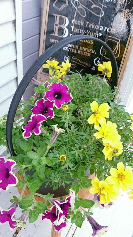 今月初めバスケット鉢ほしくて買った寄せ植え💜💛