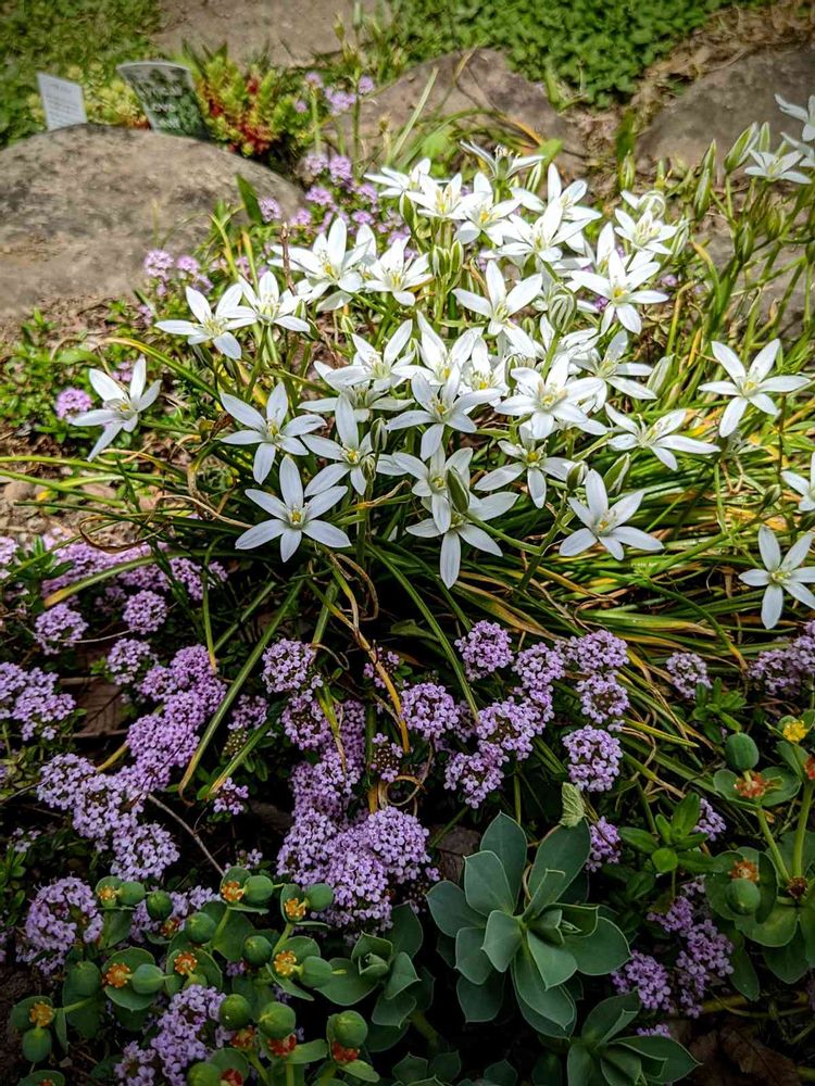 オーニソガラム?、タイム〜その下にはミルシニテスも頑張っています。