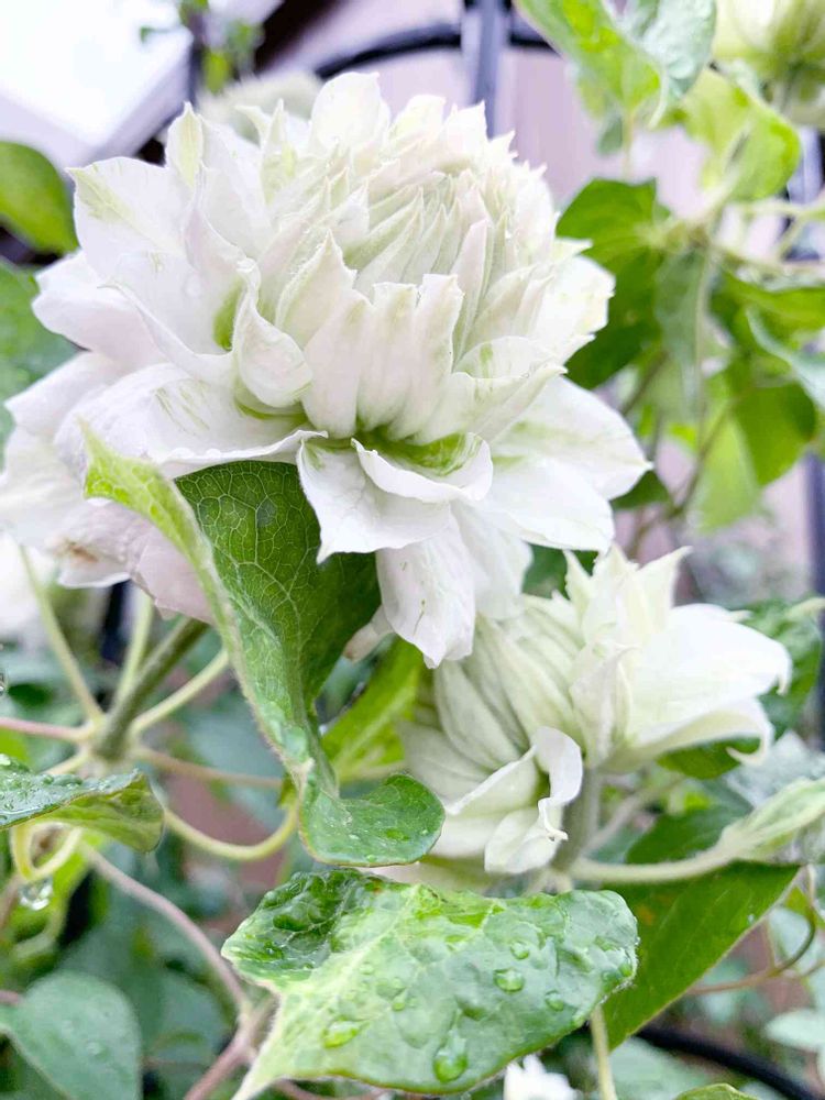 グリーン×白で大輪八重だけど爽やかな雰囲気で素敵なクレマチスです💚