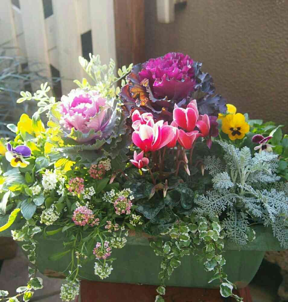 葉ボタンの寄せ植え いいですね!