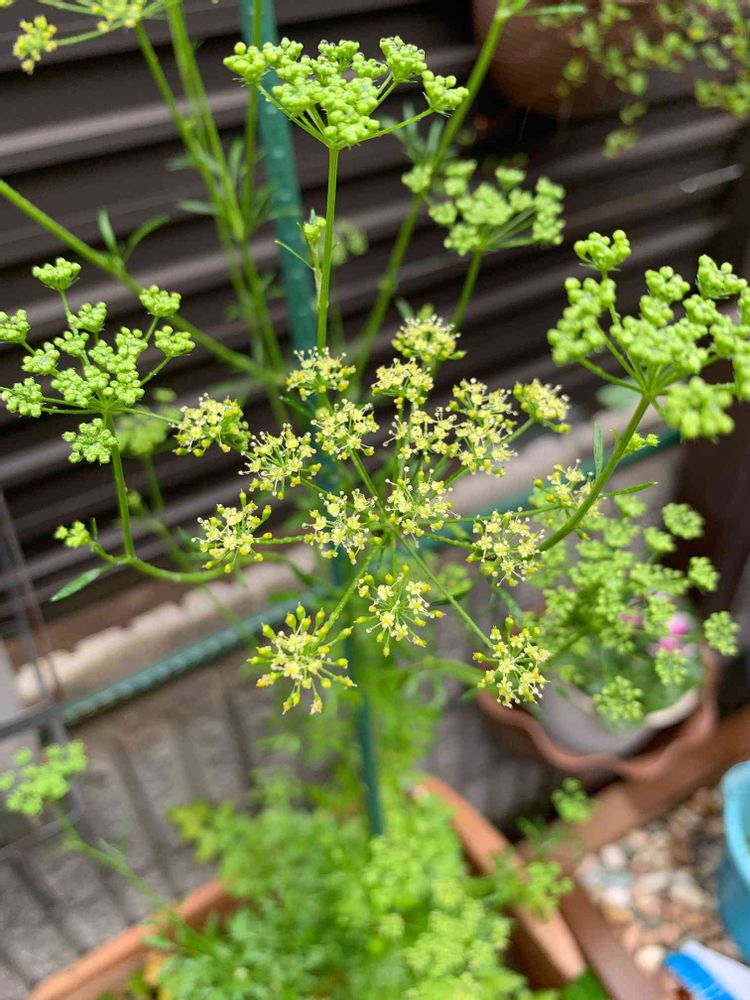イタリアンパセリを放っておいたら次から次へと花が!やっぱり切り戻した方が良いのかな?ここからどうしたものか。#イタリアンパセリの花#ハーブ