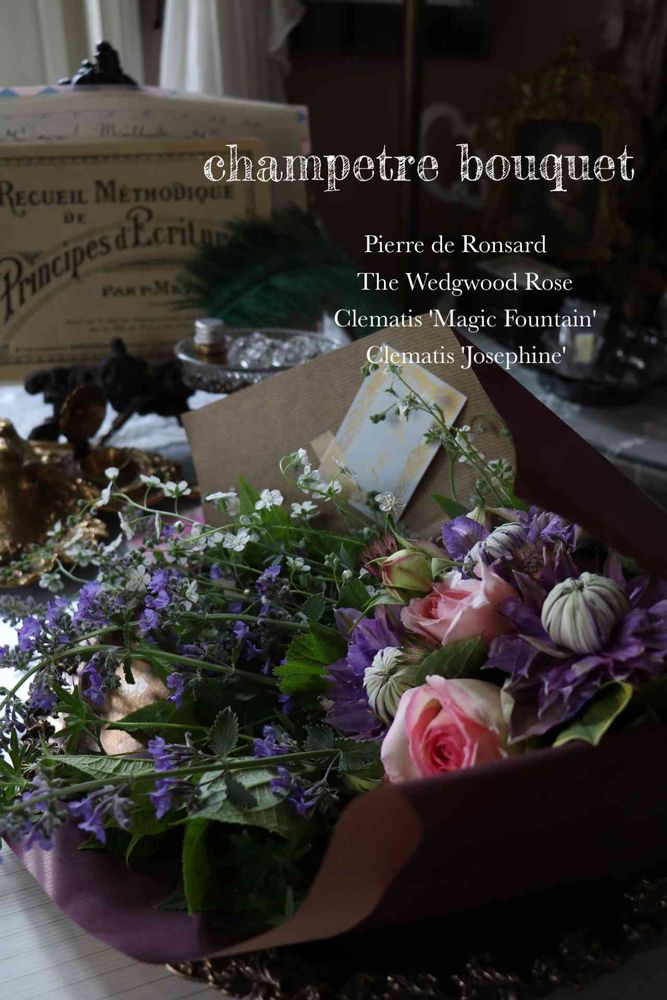 お庭のお花を摘んで、シャンペトルブーケ風に♡大先生=パープルのイメージカラーです✨