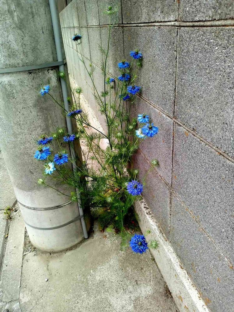 散策中に、電信柱の側に咲くニゲラを、見つけました。