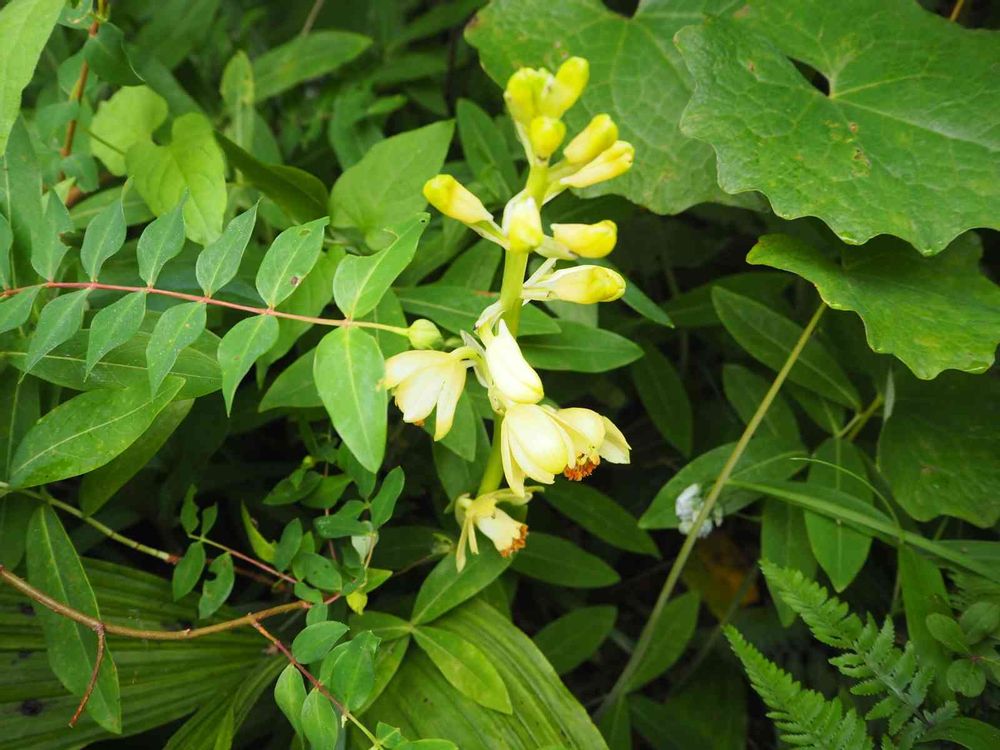 色々な植物に埋もれて咲いている
