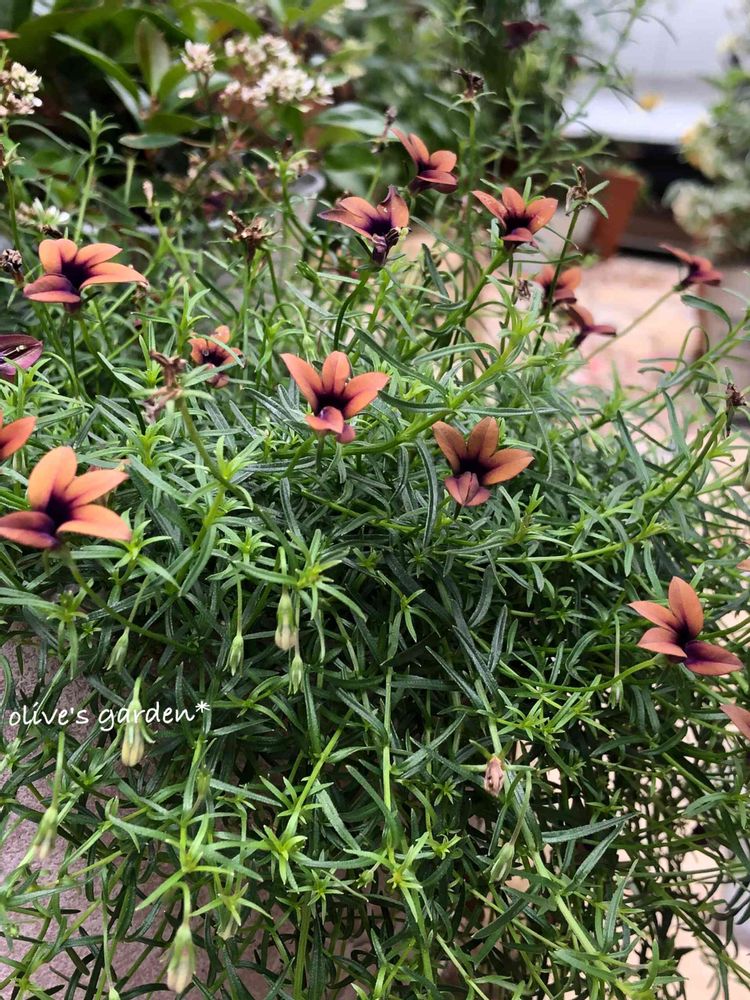 這うように広がりながら咲いてくれるモノプシス🪴ステキな色が大好き🤎去年は高温多湿で⁉︎突如枯れちゃったけど 今年こそは梅雨を乗り切って秋まで咲いて欲しい〜🥰