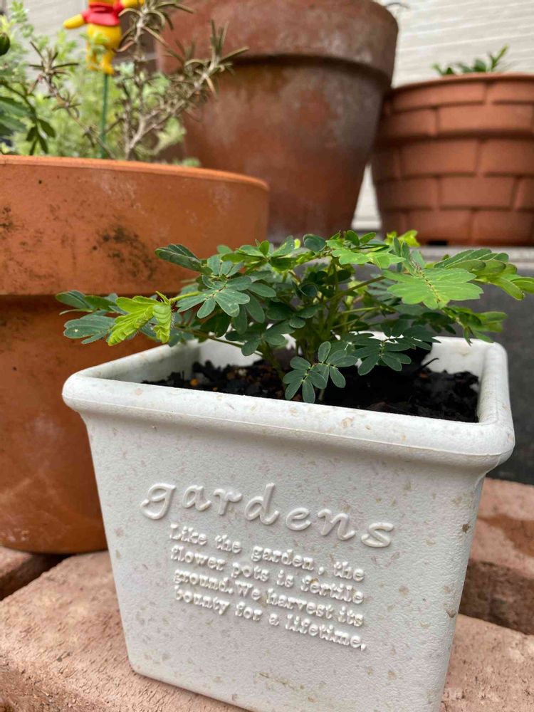 やっとお気に入りの植木鉢が見つかってオジギソウを植えました