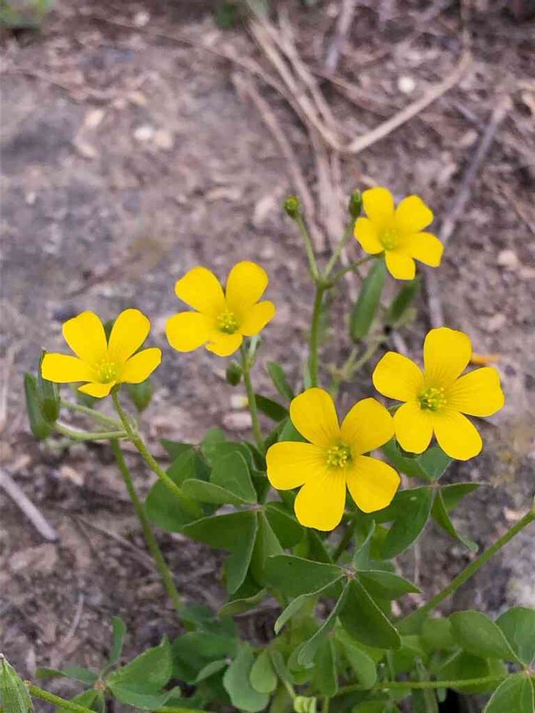 普通のカタバミは地面にへばりつく感じですが、このオッタチカタバミは、名前のようにシュッと立っています。