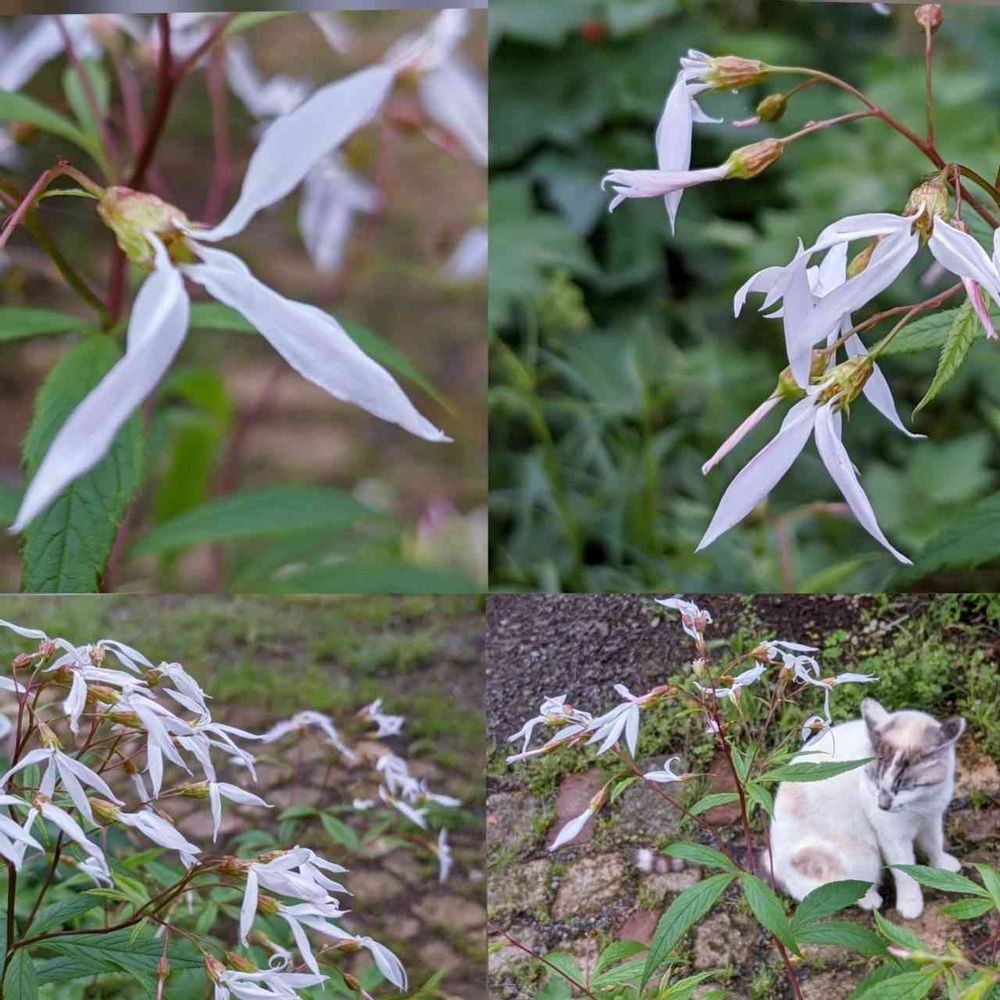 シモツケもいろいろあって、今調べると、一般的なピンクのシモツケソウとは違うらしいのよ。家にはピンクのものとあと紅白の咲き分け…でも白が余り😅…がありますよ。これはとっても風情があって、半日陰で咲かせてみたいと思いながら、怖くてなかなか株分けできないでいます。…挿し木をすればいいかしら…?🤔🙄
