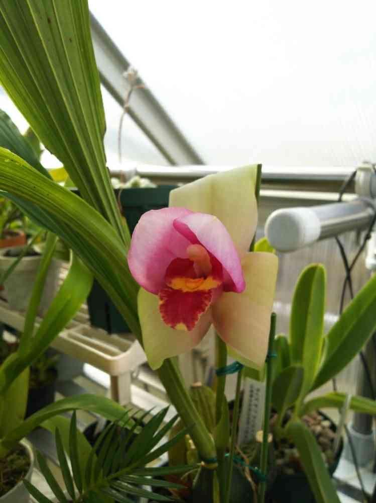 去年の世界ラン展で買って以来初めての開花です・・・が、ガク?後ろの3枚が裏にひっくり返ってます😣