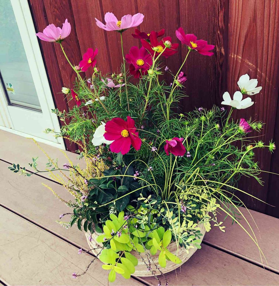 寄せ植えデザイナー 西山恭枝さんのエントランス,コスモス,カルーナ ブルガリスの投稿画像