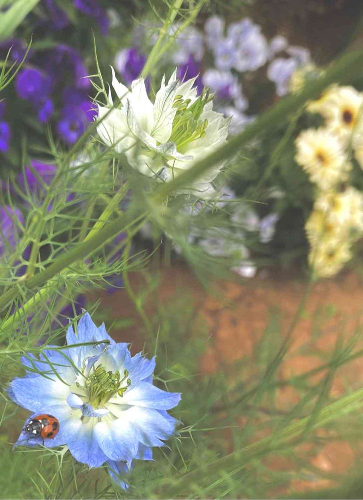 左下のニゲラ+🐞 は、私の中の(かぶと)くんのイメージなんだなぁ✨✨✨