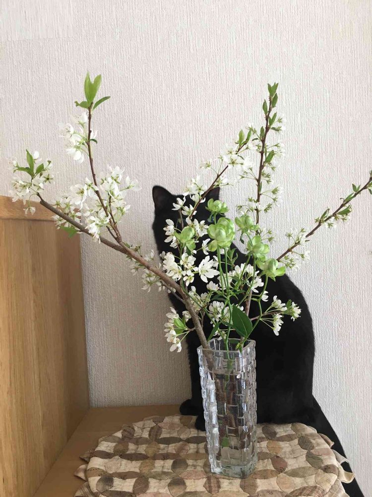 お花が白いから、お互い映えてる💕💐(´pゝω・)ニャン
