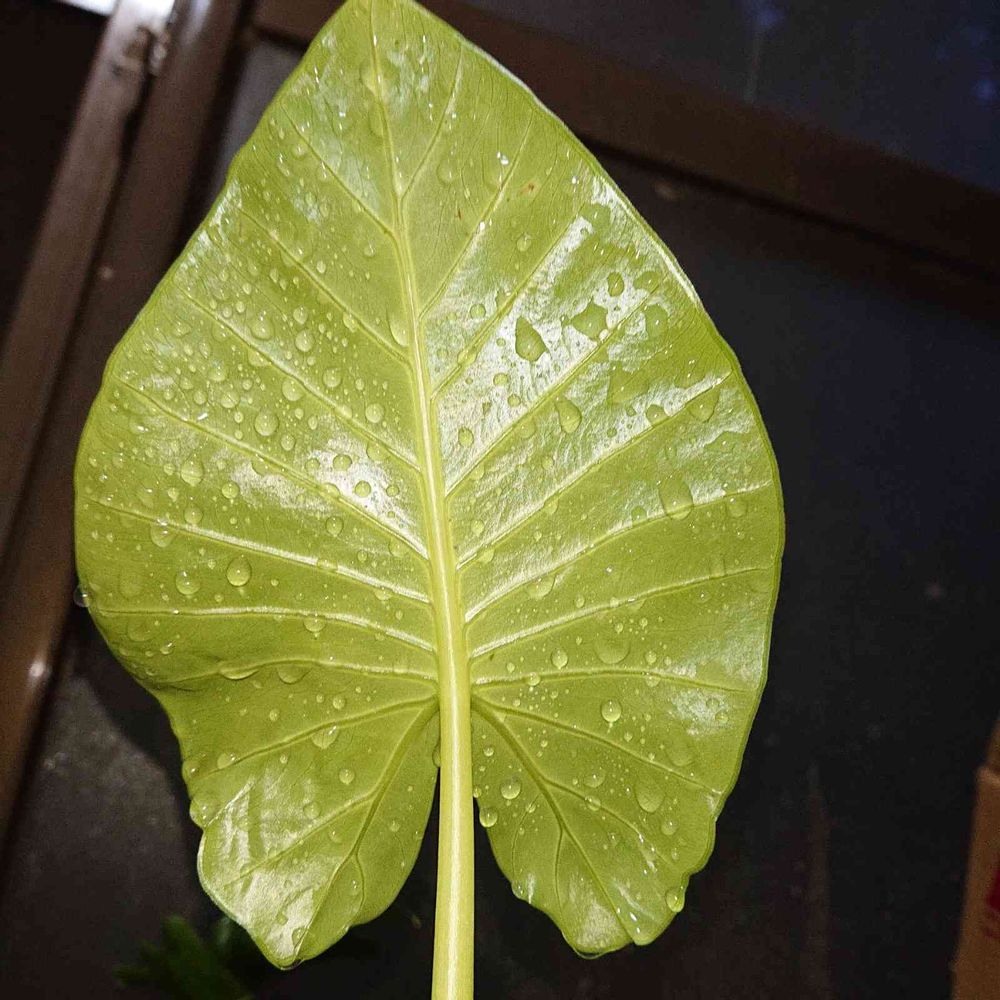 クワズイモの葉裏です!水滴と葉脈が綺麗です!。(^^)