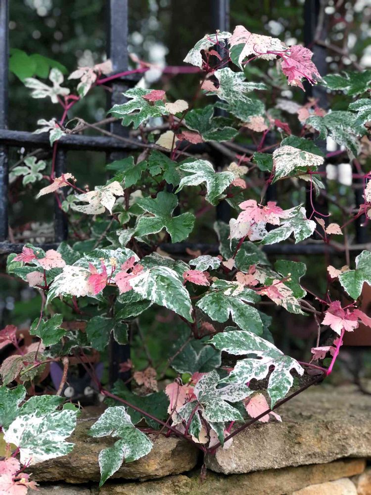 ピンクと白の斑入りの葉と紫色の蔓が美しい五色ぶどう✨✨