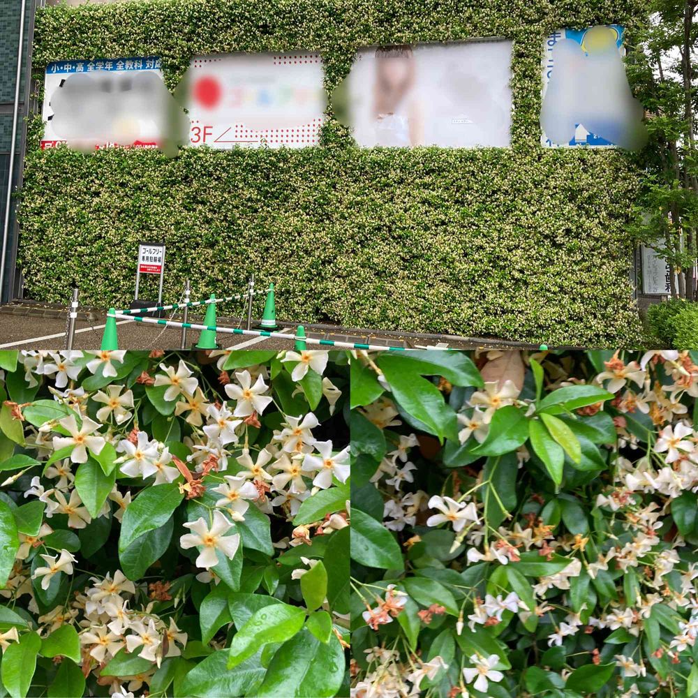 京阪木幡駅前のコンビニ。西側の壁はやはりテイカカズラでした。