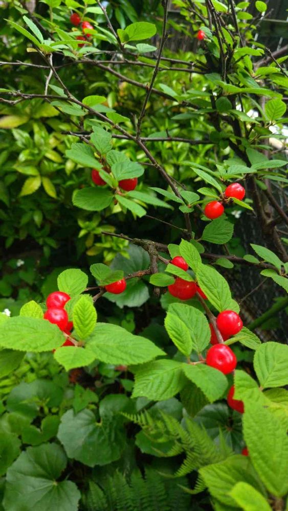 ユスラウメ♡ 大粒の綺麗な実ですネ🥰 子供の頃に遊びながら食べた懐かしい思い出です😊 昨年の秋に思い出してまだ細い木を植えました♪ 残念ながら今春は花すら咲かず緑の葉ばかりです(^^; 来春を楽しみに見守ってみます