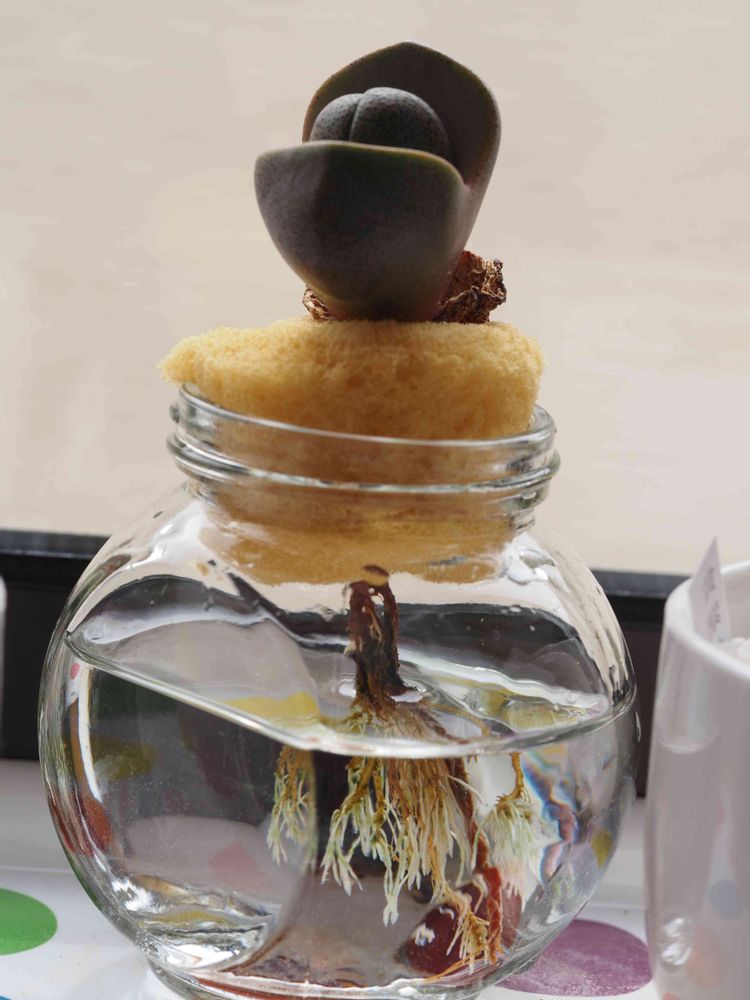さん リトープスも水耕できますよ! ということは、、、、水のやりすぎは良くないって、嘘なんですよ😎