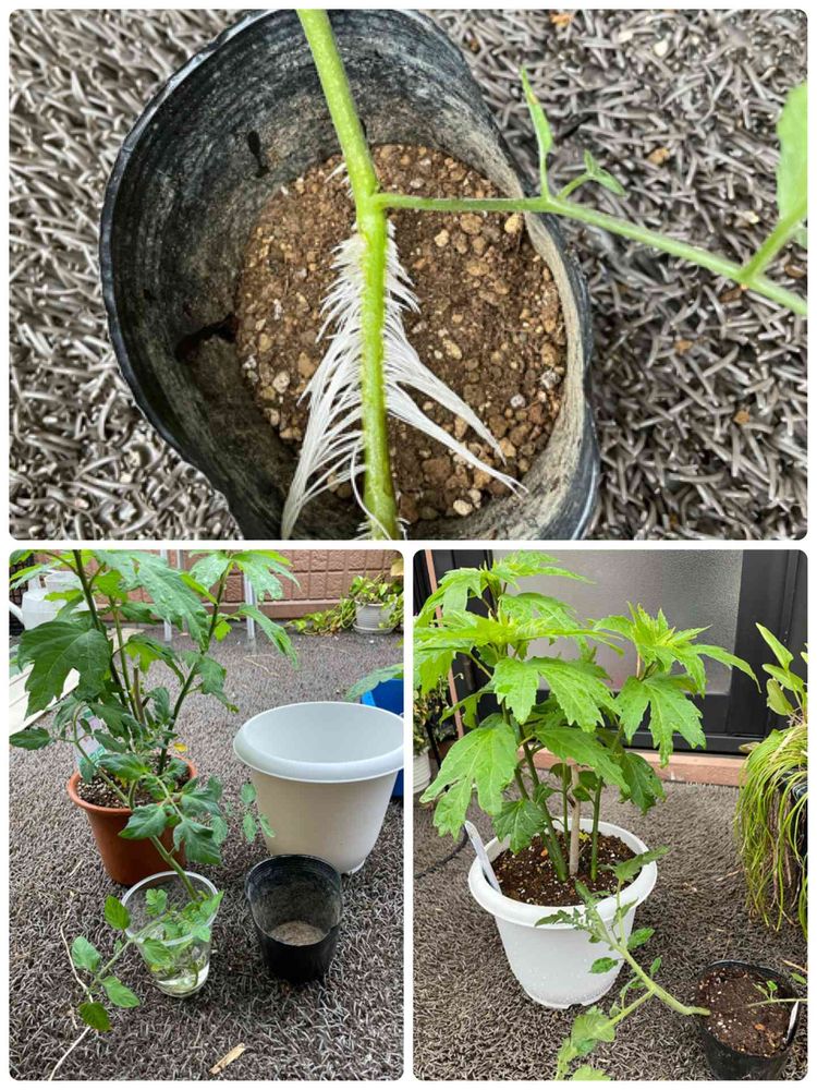 5月11日脇芽をカットし、水刺ししたミニトマト、シュガープラム。