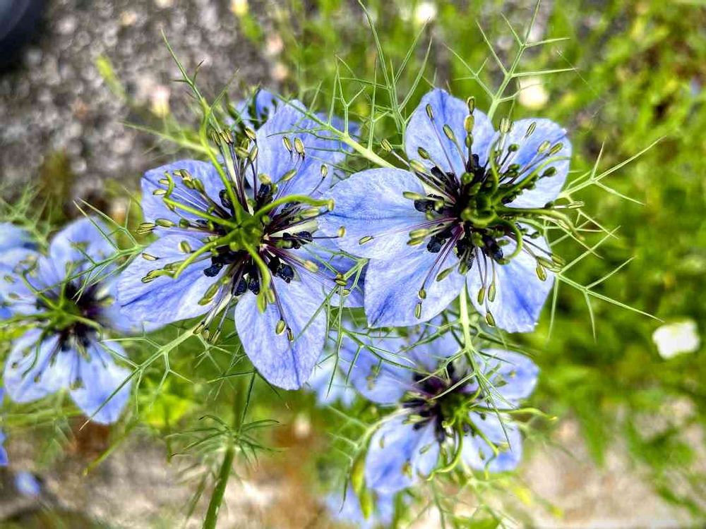 今日のお花、ニゲラです😊落ち生えのニゲラ、駐車場のアスファルトとコンクリの隙間から毎年出てきてくれます😍💙