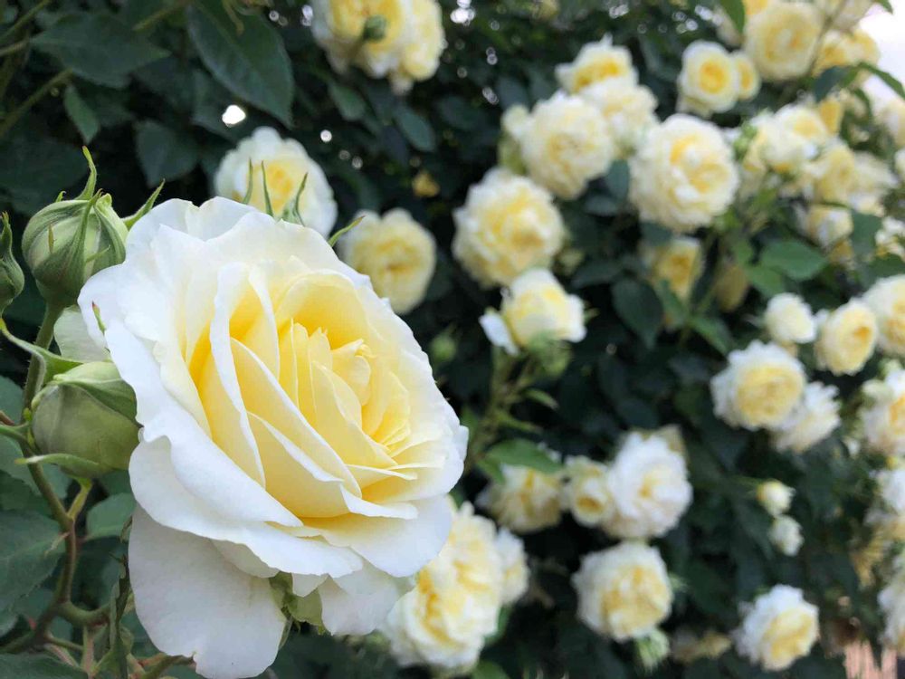 クリームイエローの素敵な薔薇の花💛💛🤍🌿