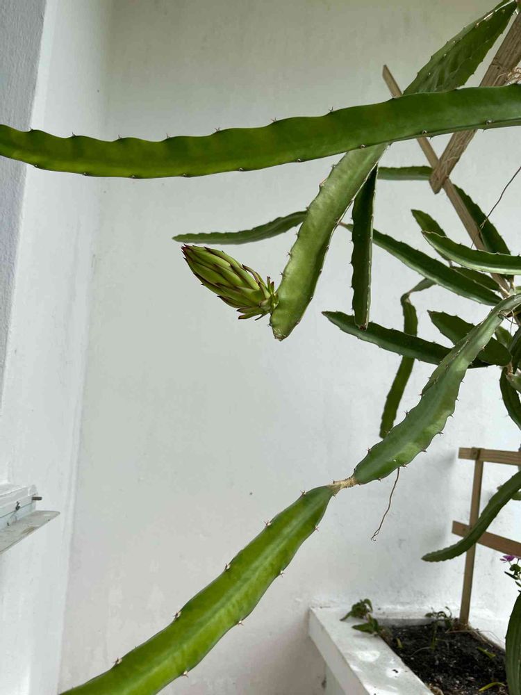 やっとやっとひとつだけドラゴンフルーツができてきました。去年から栽培してたけどなかなかフルーツが実らない。