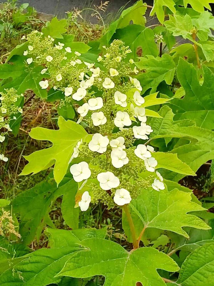 水元公園の花壇に、柏葉紫陽花が、咲き出しました。