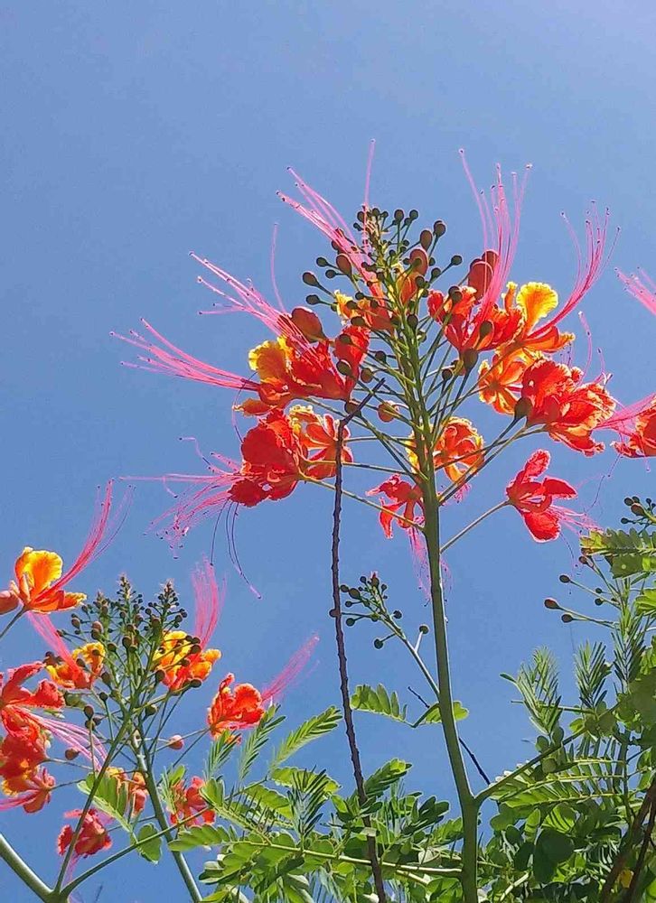 このオオゴチョウ、赤が一般的なのですが、たまに黄色があって、黄色も綺麗ですよー💛💛背が高い豪華なお花ですー♥♥