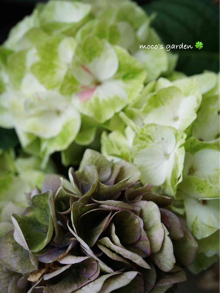白とグリーンの組み合わせのあじさいも色々あるんだね。