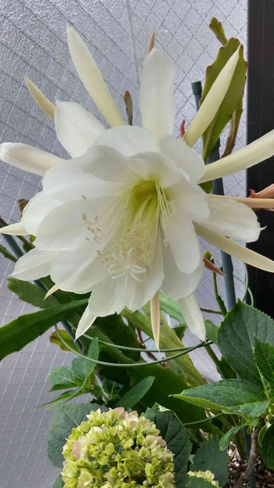 実家に月下美人があって、似たようなお花だったので、そうかな?と思いました。今調べたら、月下美人も、孔雀サボテンの仲間だと書いてありました。夜咲いて、午前中には萎んでしまうお花ですが、すっごくイイ香りなんです。