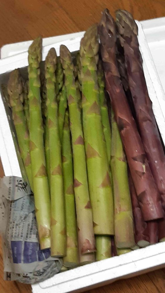それにしても美味しそうなアスパラガス(๑´ڡ`๑) 右の赤いのは味が違うのですか⁉️ 羨ましい(﹡ˆ﹀ˆ﹡)♡