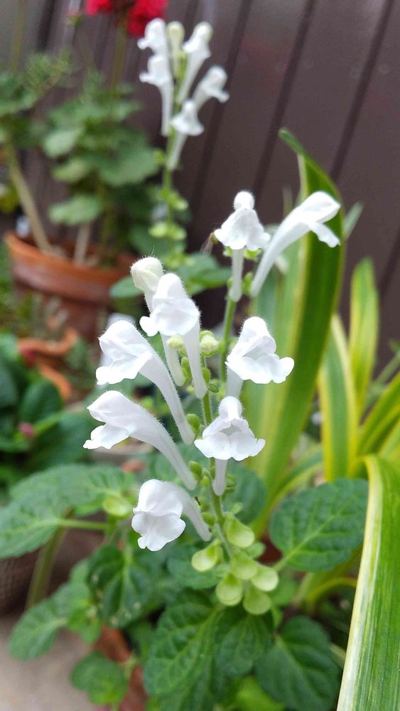 植木鉢の隅っこ暮らしタツナミソウの白が